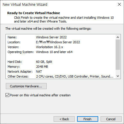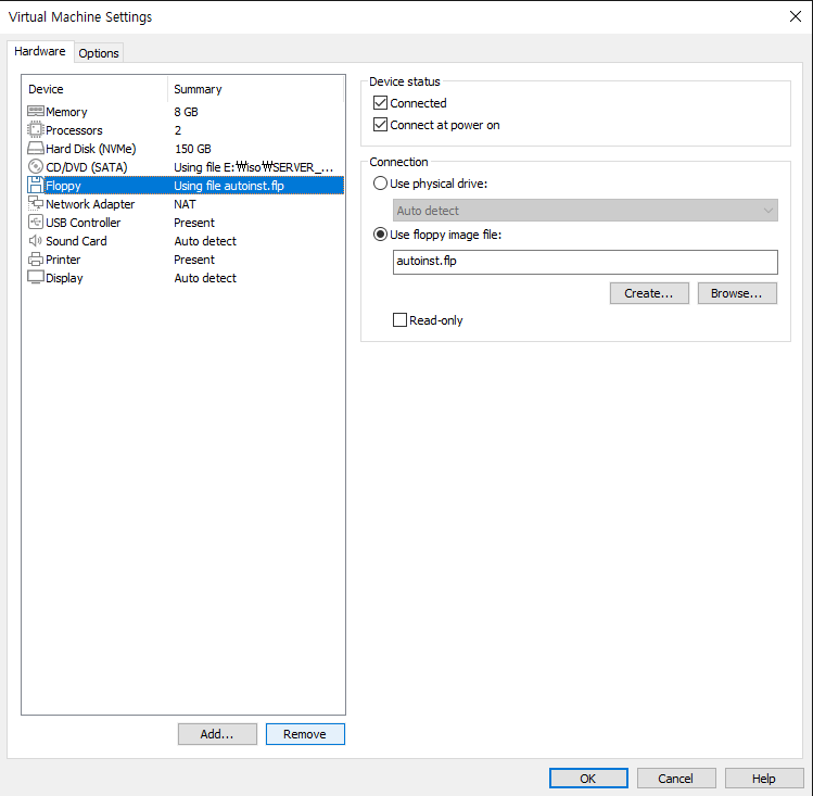 2. VMware Workstation 에서 VMware Workstation에 iso 마운트하고 설치