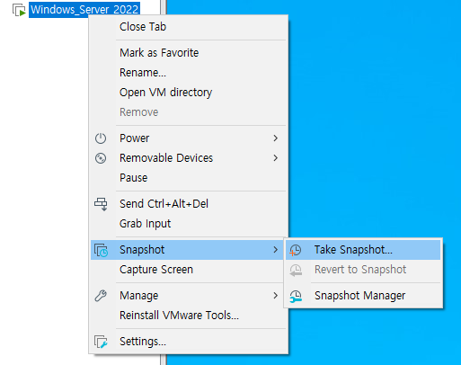 초기 설치 후 스냅샷을 찍어두면 추후 문제 발생 시 다시 초기 설정으로 되돌릴 수 있습니다.